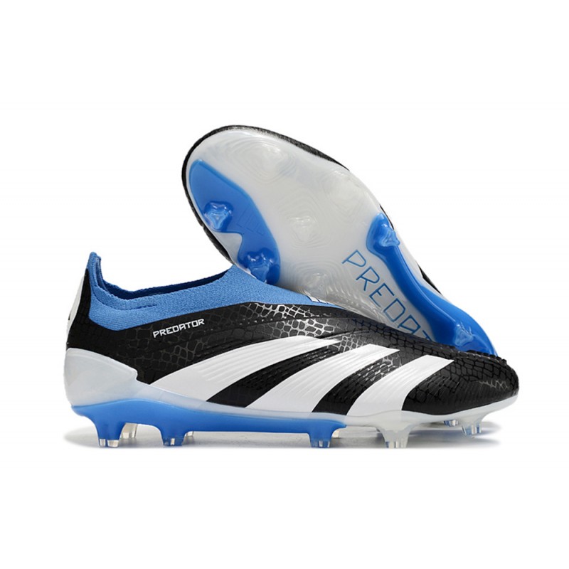 Chaussure Adidas Predator Elite Laceless FG Noir Blanc Bleu