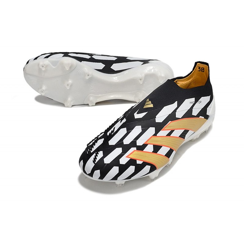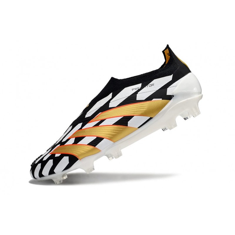 Chaussure Adidas Predator Elite Laceless FG Noir Blanc Or