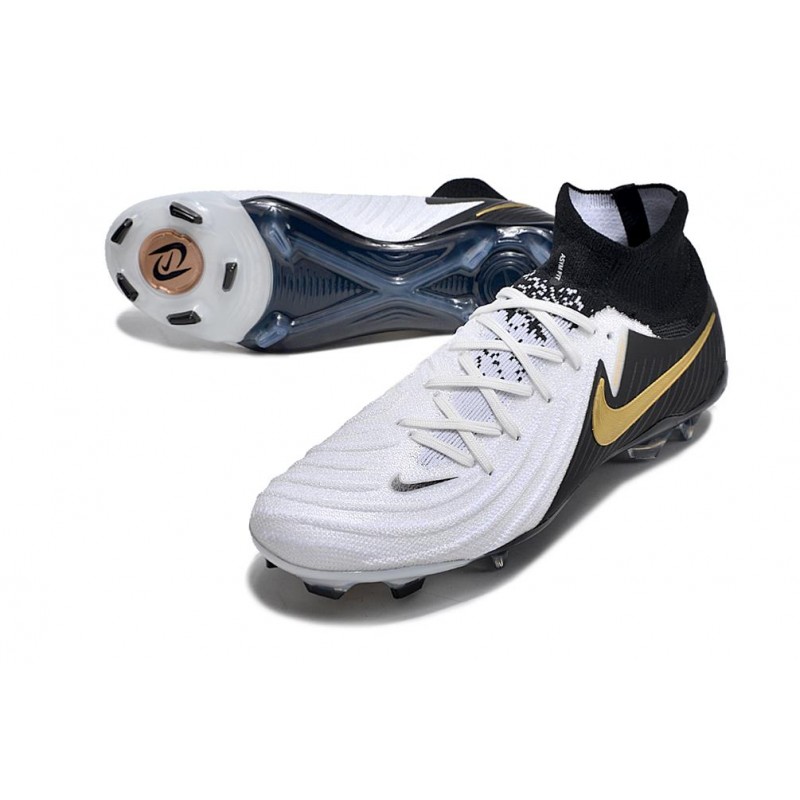 Chaussure Nike Phantom Luna 2 Elite FG Blanc Noir Pièce Dor Métallique